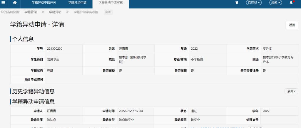 一是启用新管理系统,对新生线上入学手续流程进一步优化,通过办学单位和学校两级审核审批新生线上转专业、转站点申请,通过新生线上核对个人录取信息确保学籍信息准确。新生线上报到做到全流程、全覆盖,不再需要员工提供相关纸质申请。
